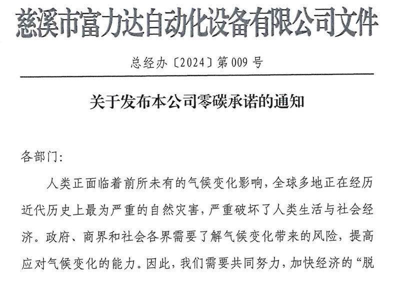 • 關于發布本公司零碳承諾的通知